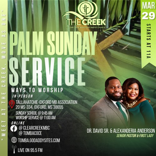 Join us on Palm Sunday as we celebrate the King with our sister churches in the district at the T.O.M.B. Building. Clear Creek will be leading services and we'd love to see you there! We look forward to a powerful worship experience!